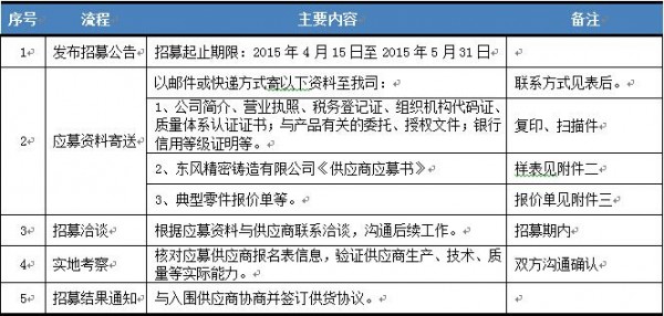 (一)通過本次招募尋求2-3家滿足條件的機加供應商,作為東風精鑄制造業務鏈的有效組成部分,在東風精鑄廠區內從事指定產品的生產活動。
